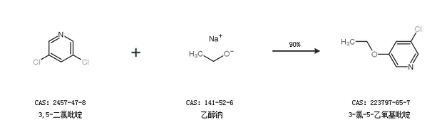 2.通过3,5-二氯吡啶和乙醇钠合成3-氯-5-乙氧基吡啶,收率约90%;