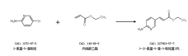 1.通过2-氨基-5-溴吡啶和丙烯酸乙酯合成3-(2-氨基-5-溴-3-吡啶基)丙烯酸乙酯
