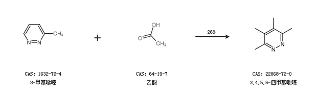 1.通过3-甲基哒嗪和乙酸合成3,4,5,6-四甲基吡嗪,收率约26%;