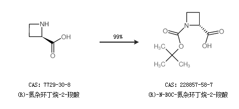 1.通过(R)-氮杂环丁烷-2-羧酸合成(R)-N-BOC-氮杂环丁烷-2-羧酸,收率约99%;