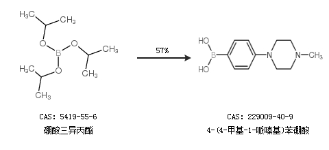 2.通过硼酸三异丙酯合成4-(4-甲基-1-哌嗪基)苯硼酸,收率约57%;