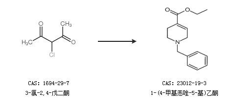 2.通过甲亚胺酸和3-氯-2,4-戊二酮合成1-(4-甲基恶唑-5-基)乙酮