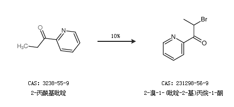 1.通过2-丙酰基吡啶合成2-溴-1-(吡啶-2-基)丙烷-1-酮,收率约10%;