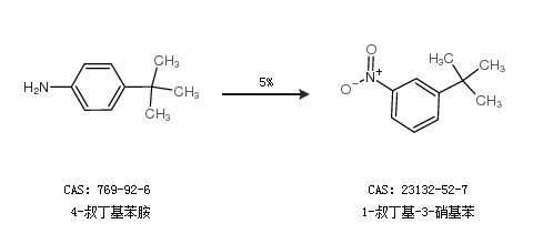 1.通过4-叔丁基苯胺合成1-叔丁基-3-硝基苯,收率约5%;