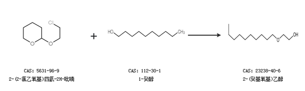 2.通过2-(2-氯乙氧基)四氢-2H-吡喃和1-癸醇合成2-(癸基氧基)乙醇