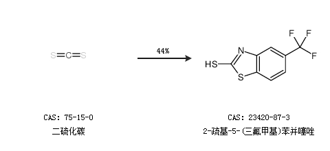 2.通过二硫化碳合成2-疏基-5-(三氟甲基)苯并噻唑,收率约44%;