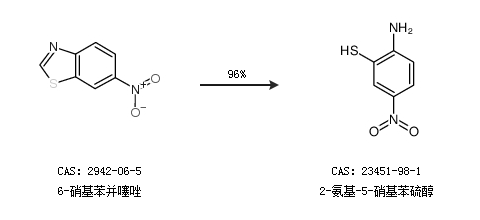 1.通过6-硝基苯并噻唑合成2-氨基-5-硝基苯硫醇,收率约96%;