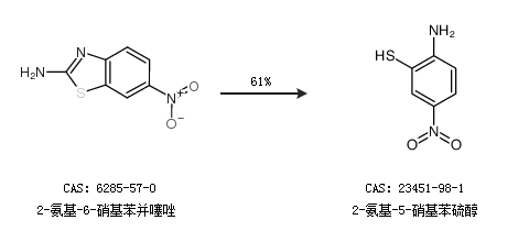 2.通过2-氨基-6-硝基苯并噻唑合成2-氨基-5-硝基苯硫醇,收率约61%;