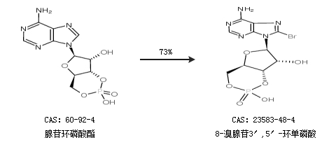 1.通过腺苷环磷酸酯合成8-溴腺苷3′,5′-环单磷酸,收率约73%;