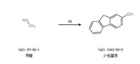 2.通过甲醇合成2-羟基芴,收率约2%;