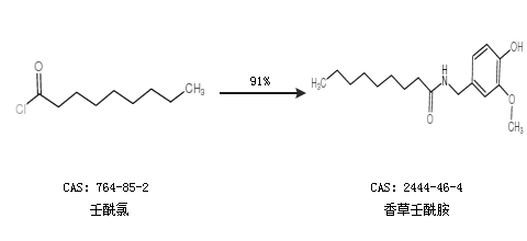 1.通过壬酰氯合成香草壬酰胺,收率约91%;