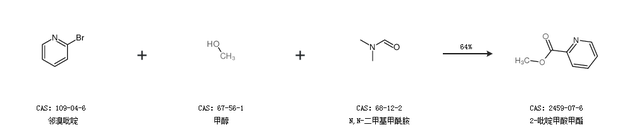 1.通过邻溴吡啶、甲醇和N,N-二甲基甲酰胺合成2-吡啶甲酸甲酯,收率约64%;