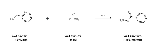 2.通过2-吡啶甲醇和甲醇钾合成2-吡啶甲酸甲酯,收率约44%;