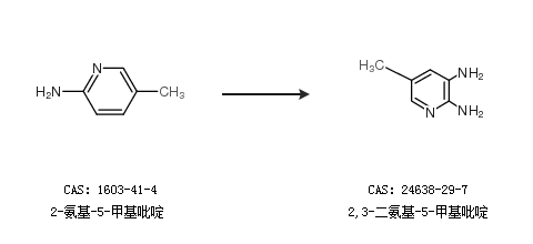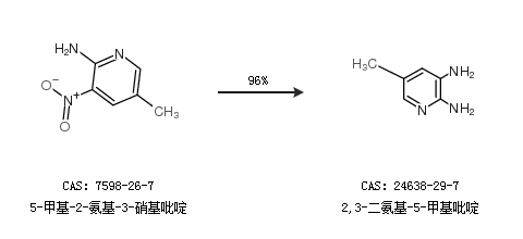 1.通过5-甲基-2-氨基-3-硝基吡啶合成2,3-二氨基-5-甲基吡啶,收率约96%;