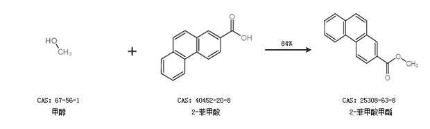 2.通过甲醇和2-菲甲酸合成2-菲甲酸甲酯,收率约84%;