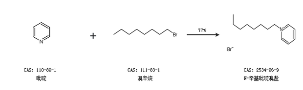 1.通过吡啶和溴辛烷合成N-辛基吡啶溴盐,收率约77%;