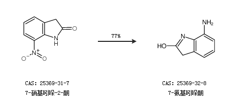 1.通过7-硝基吲哚-2-酮合成7-氨基吲哚酮,收率约77%;