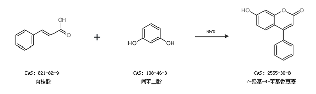 2.通过肉桂酸和间苯二酚合成7-羟基-4-苯基香豆素,收率约65%;