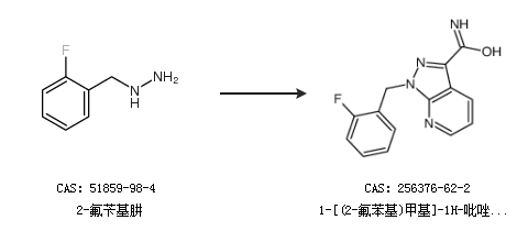 1.通过2-氟苄基肼合成1-[(2-氟苯基)甲基]-1H-吡唑并[3,4-b]吡啶-3-羧酰胺