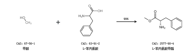 1.通过甲醇和L-苯丙氨酸合成L-苯丙氨酸甲酯,收率约99%;