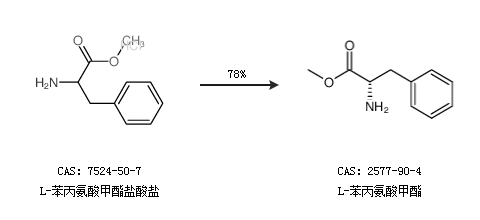 2.通过L-苯丙氨酸甲酯盐酸盐合成L-苯丙氨酸甲酯,收率约78%;