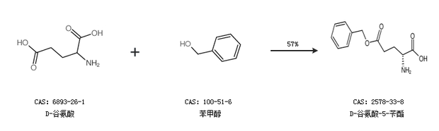 1.通过D-谷氨酸和苯甲醇合成D-谷氨酸-5-苄酯,收率约57%;