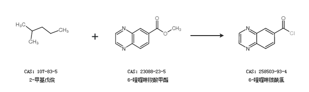 2.通过2-甲基戊烷和6-喹喔啉羧酸甲酯合成6-喹喔啉羰酰氯