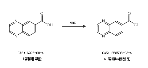 1.通过6-喹喔啉甲酸合成6-喹喔啉羰酰氯,收率约99%;