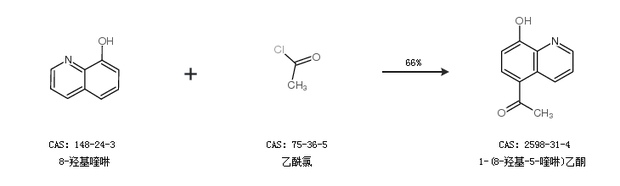 1.通过8-羟基喹啉和乙酰氯合成1-(8-羟基-5-喹啉)乙酮,收率约66%;