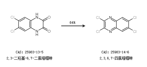 1.通过2,3-二羟基-6,7-二氯喹喔啉合成2,3,6,7-四氯喹喔啉,收率约64%;