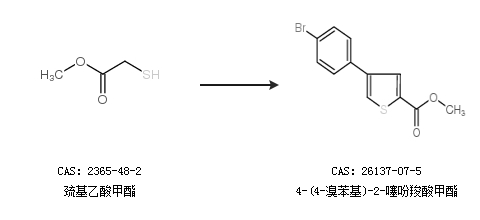 1.通过巯基乙酸甲酯合成4-(4-溴苯基)-2-噻吩羧酸甲酯