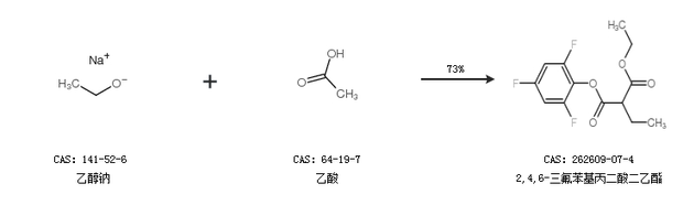 1.通过乙醇钠和乙酸合成2,4,6-三氟苯基丙二酸二乙酯,收率约73%;