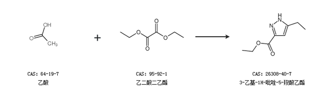 2.通过乙酸和乙二酸二乙酯合成3-乙基-1H-吡唑-5-羧酸乙酯