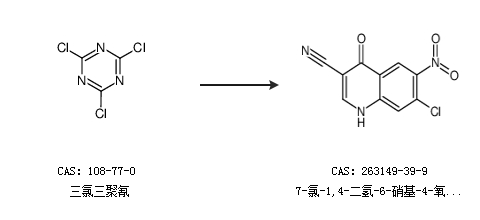 1.通过三氯三聚氰合成7-氯-1,4-二氢-6-硝基-4-氧代-3-喹啉甲腈