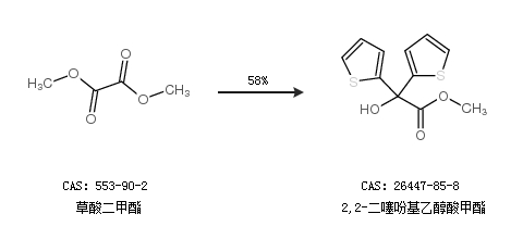 1.通过草酸二甲酯合成2,2-二噻吩基乙醇酸甲酯,收率约58%;