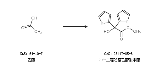 2.通过乙酸合成2,2-二噻吩基乙醇酸甲酯