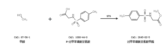 1.通过甲醇和N-对甲苯磺酰甘氨酸合成对甲苯磺酰甘氨酸甲酯,收率约97%;