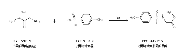 2.通过甘氨酸甲酯盐酸盐和对甲苯磺酰氯合成对甲苯磺酰甘氨酸甲酯,收率约98%;