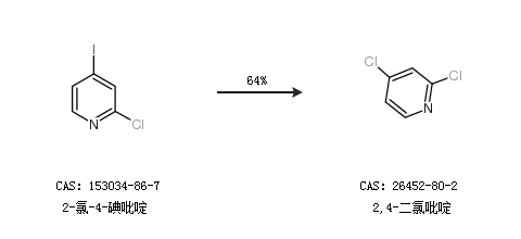 2.通过2-氯-4-碘吡啶合成2,4-二氯吡啶,收率约64%;