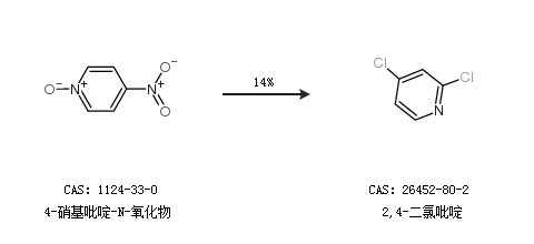 1.通过4-硝基吡啶-N-氧化物合成2,4-二氯吡啶,收率约14%;