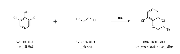 1.通过2,6-二氯苯酚和二溴乙烷合成2-(2-溴乙氧基)-1,3-二氯苯,收率约48%;