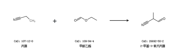 1.通过丙腈和甲酸乙酯合成2-甲基-3-氧代丙腈