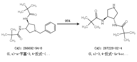 1.通过(S,s)-n-苄基-3,4-反式-(n-boc)-二氨基吡咯烷合成(S,s)-3,4-反式-(n-boc)-二氨基吡咯烷,收率约95%;