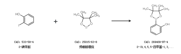 1.通过2-碘苯酚和频哪醇硼烷合成2-(4,4,5,5-四甲基-1,3,2-二杂氧戊硼烷-2-基)苯酚