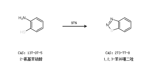 1.通过2-氨基苯硫醇合成1,2,3-苯并噻二唑,收率约97%;