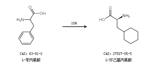 1.通过L-苯丙氨酸合成L-环己基丙氨酸,收率约10%;