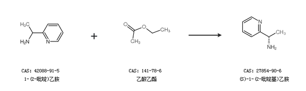 2.通过1-(2-吡啶)乙胺和乙酸乙酯合成(S)-1-(2-吡啶基)乙胺
