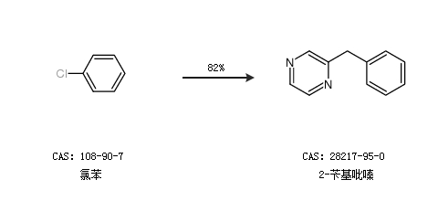 2.通过氯苯合成2-苄基吡嗪,收率约82%;