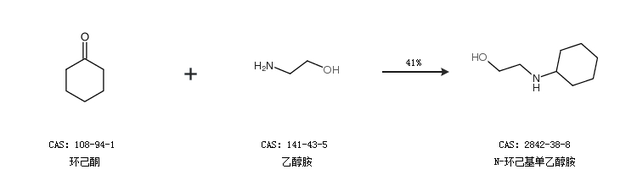 1.通过环己酮和乙醇胺合成N-环己基单乙醇胺,收率约41%;
