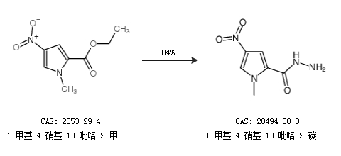 2.通过1-甲基-4-硝基-1H-吡咯-2-甲酸乙酯合成1-甲基-4-硝基-1H-吡咯-2-碳酰肼,收率约84%;